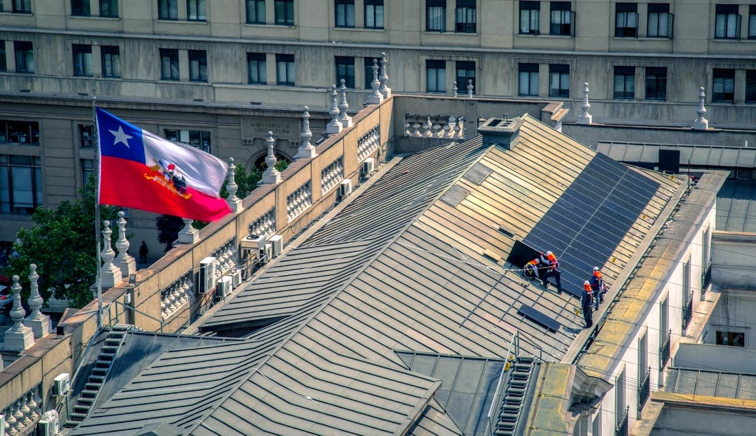 Hace cuatro años que el palacio de Gobierno, La Moneda, se sumó a la transición energética del país con la instalación de 118 paneles solares en el techo de sus instalaciones, sumándose al sistema interconectado central el que les permite, hasta el día de hoy, que se genere un ahorro doble en términos energéticos, disminuyendo sus gastos en casi 3 millones de pesos anualmente, así como también, la disminución de 14,77 toneladas de Co2 en el mismo rango de tiempo.